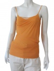 Canotta in jersey leggero di viscosa, insaccata doppia con bretelline con bordatore basso. Dietro oblò rifinito con bordatore. Vestibilità aderente, lunghezza sui fianchi.