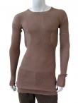 Maglia in filato di cotone ecofriendly, lunga, girocollo, maniche lunghe, a coste con parti traforate, taglio vivo in fondo