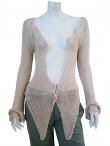 Cardigan Nicolas&Mark in filato di viscosa, punto rado, scollo a V con due bottoni a pressione in fondo e due lunghe punte davanti e una dietro, maniche molto lunghe sborsate sul fondo, vestibilità asciutta