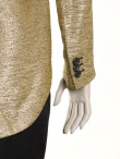 Tuxedo jacket with 2 buttons in golden fabric, collar in satin in clashing colour, longer back with slit