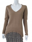 Warm merino wool sweater, long and confortable fit, deep V-neckline in front and behind, the rounded bottom in rib knit stitch.