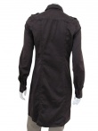 Eco-friendly cotton long shirt with stitching pleated joke, buttoned collar in metal, decorated with frayed and raw-edged hems and fringed fund.