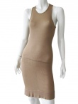 Brown ribbed viscose and silk dress, round and close, seam in the center back, band in bottom, slim fit.