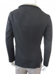 Two-button single breasted jacket with flap pockets, two lateral vents, decorative patchs and mends.
