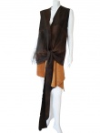 Long waistcoat with patchwork patterns in soft leather with long edges on the front to knot however you wish