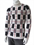 Wool and cashmere "dolcevita" turtleneck sweater in red black and white yarn, patchwork making, ribbed finishing.