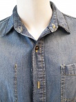 Sporty Nicolas&Mark shirt in elastic denim cotton,button fastener shaped with inset on back shoulder, breastpocket, stitchings and tears, seams in clashing colour.
