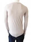 Ecru wool and angora t-shirt, wide round raw-cutted neckline, inserted long sleeve, slim fit, curly seams.