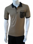 Polo 3 buttons-sleeved cotton. Neck list and contrasting cuffs. Patch pocket on the contrary. Ribbon embroidered above the pocket stitched all around. Tight fit, length hips.