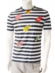 Black and white striped short sleeve t-shirt, close O-neckline, decoration with flags, regular fit.
