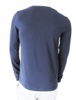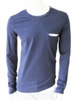 Dark blue long sleeve t-shirt, wide O-neckline, imitation of breast-pocket, regular fit.